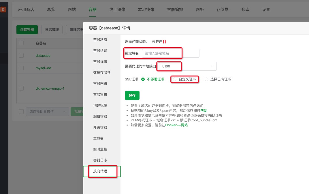 方法1:直接在容器管理中配置: